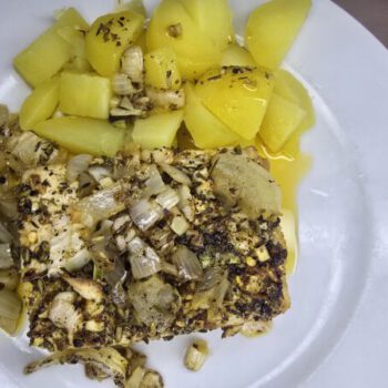 Veganer Apfel-Kartoffelauflauf mit Schafskäse