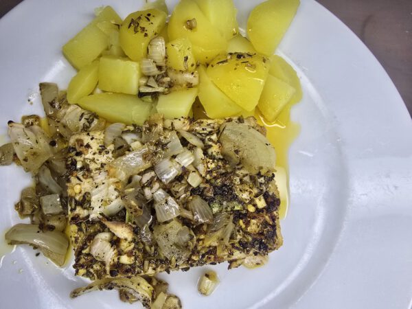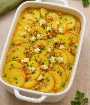 Veganer Apfel-Kartoffelauflauf mit Schafskäse
